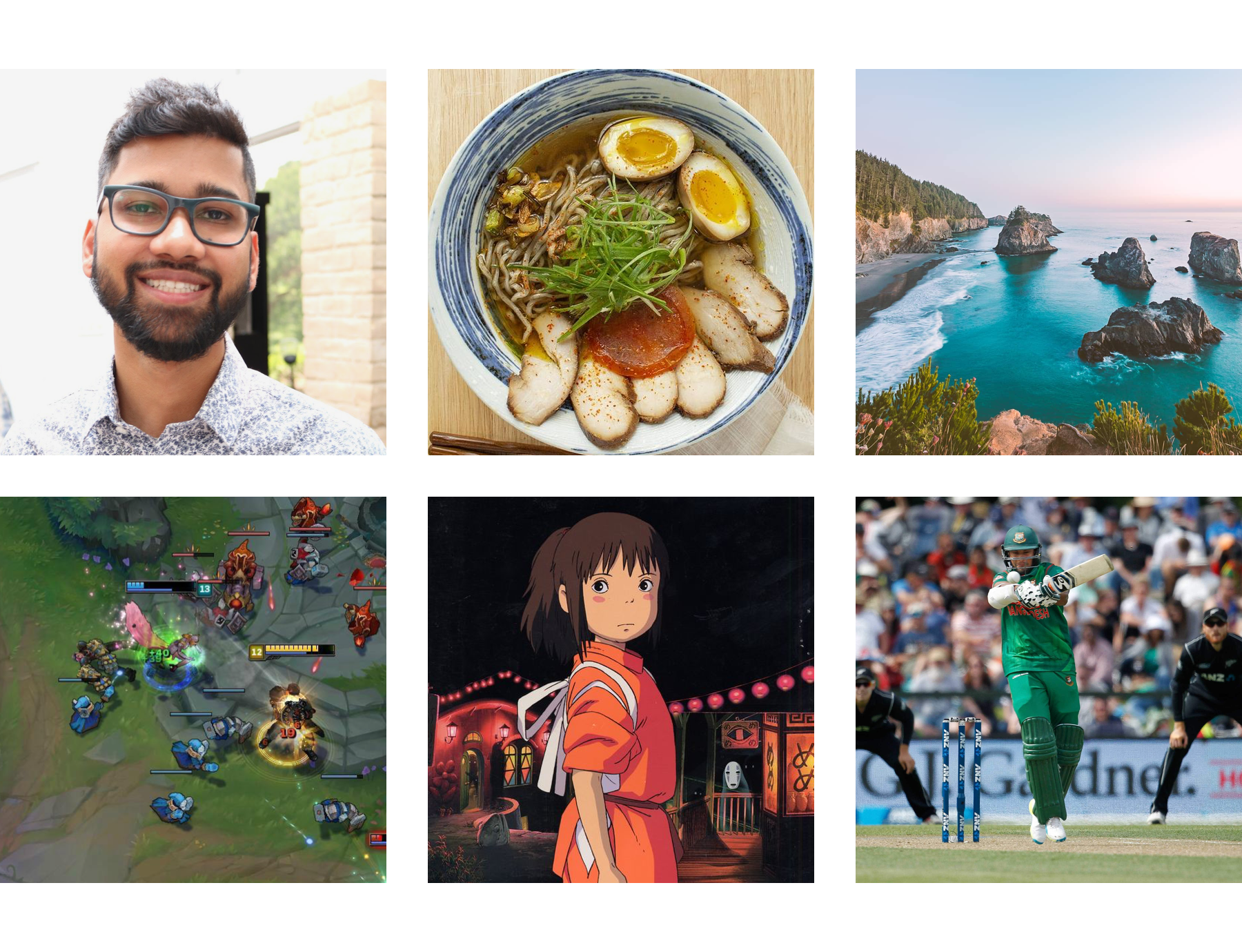 I love to cook, try new recipes, and discover restaurants that serve exotic cuisine. I am a Ramen enthusiast and can’t resist extra spicy variations. I'm a newbie landscape photographer who recently got into this as a hobby after moving to the West Coast. I play League of Legends from time to time, enjoy watching cricket (the sport, not the insect) games, and enjoy playing table tennis. Last but not least, I'm a huge fan of Studio Ghibli movies and Spirited Away is one of my favorites.