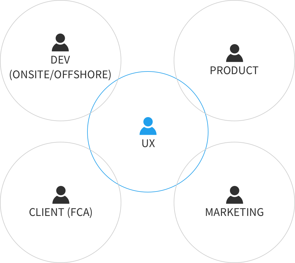 Initially, the UX team was viewed as disrupters (by Dev, Product, Client, Marketing, etc.) because we questioned how and why decisions could be made months in advance and without any user input. I facilitated whiteboarding sessions to help improve team relationship by allowing everyone to understand what the role of UX is, and how it is beneficial to the end user.